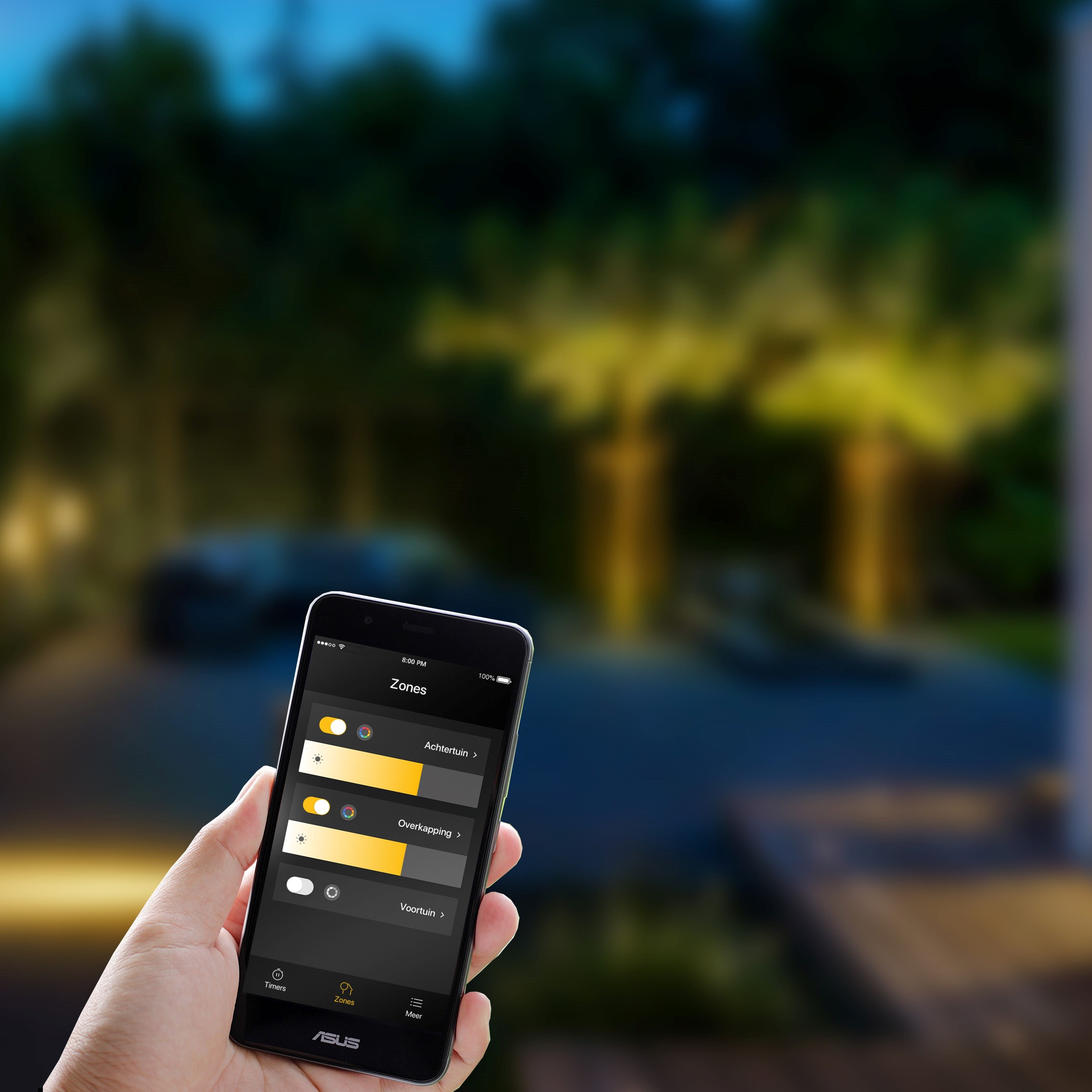 Pour les marques Garden Lights et Lightpro, nous allons introduire SMART en plusieurs phases dans les prochains mois. Ces produits sont introduits en tant que famille distincte : Garden Lights Plus et Lightpro NXT. La première phase est dès à présent sur le marché : le smart Switch. Grâce à ce Switch, vous obtenez un éclairage de jardin smart que vous contrôlez avec votre téléphone.